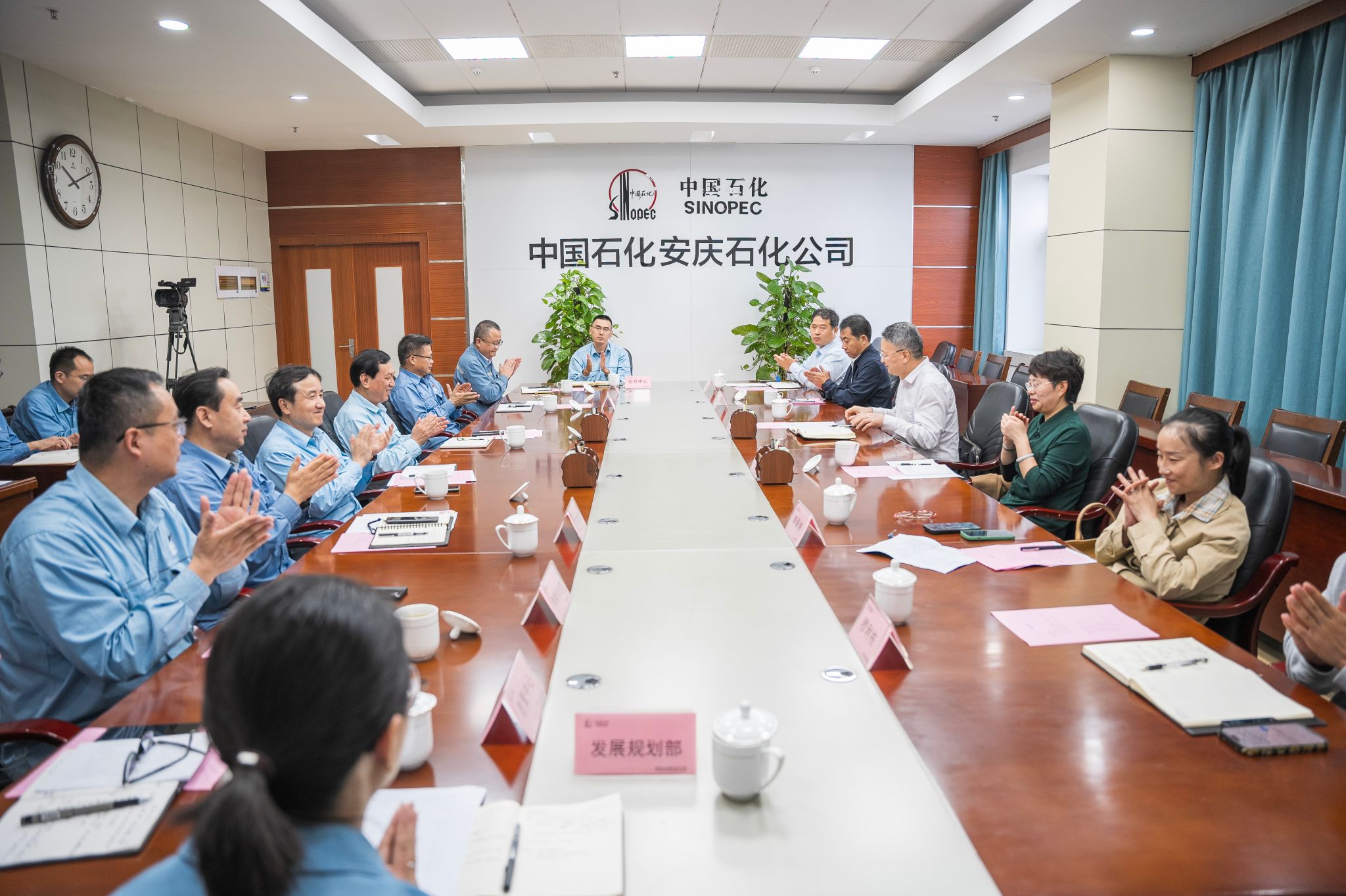 刘晓华代表安庆石化向交流组一行表示欢迎,对学校长期以来关心支持安庆石化建设发展表示感谢。他表示,安庆石化将全力支持合作项目资源整合,助力高校科研能力提升,进一步加深与学校的交流合作,成立领导工作专班推进项目合作,明确企业智能化、数字化等大方向并进行项目对接。